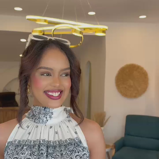 Effortlessly elegant and irresistibly breezy, this halter maxi dress is your go-to piece for summer strolls, beach getaways, or casual chic outings. Featuring a high gathered neckline with a tie-back detail, it flatters all body shapes while offering ultimate comfort.